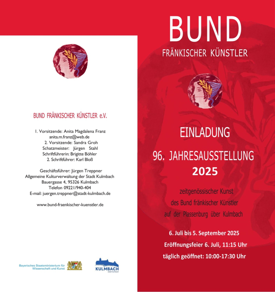 96. Jahresausstellung zeitgenössischer Kunst des Bundes fränkischer Künstler - Teilnahme mit 2 Werken auf der Plassenburg über Kulmbach, 6. Juli - 5. Sept. 2025